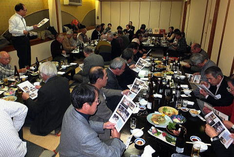 | 明けましておめでとうございます。 「あの日」から1000日余りが過ぎましたが、関東甲信越、北海道地区のOBの皆様方には日頃から何かとご支援を賜り厚く御礼申し上げます。 12月初旬、東京からの友人を案内して、久しぶりに仙台から気仙沼への海岸線を車で走りました。国道の至る所に【ここから過去の津波による浸水区域】、【過去の津波による浸水区域ここまで】という大標識が数多く設置されていました。 走りながら見る景色は「復興はまさしくこれからだな〜・・」と思うシーンがまだまだいっぱいありました。車の中では、今までもそうであったように誰も話をする人もなくただ沈黙のみが支配してのドライブでした。 さて、2013年は『ならぬことはならぬものです』で新年が始まり、春には『じぇじぇじぇ』が、そして秋には『おらほのチーム』が巨人をやっつけてしまって日本一になった東北でしたが、OB会東北支部も総勢77名という大きな世帯に成長いたしました。 一昨年2つ増えた同好会は昨年も2つが立ち上がり計7つに。 しかも全同好会の参加人員が記録更新するなど非常に活発な1年でした。 今年もこれらの活動を通して会員相互の親睦をさらに深めると共に、同好会に参加出来ない会員さんとのコミュニケーションの取り方など工夫して行きたいと思います。 12月7日に行われた恒例の忘年会には、北海道支部から片山さんが、現役では東京から太田登志恵さんがかけつけてくれました。スナップは「ファミリーコンサート」を大成功させた荒川会員がOB会ホームページをコピーして皆さんにお渡ししながら御礼を述べているところです。 |