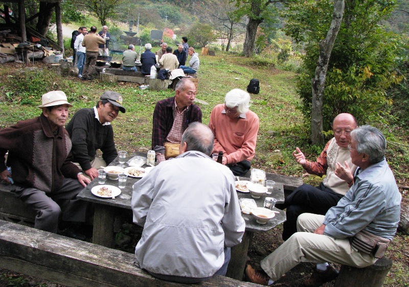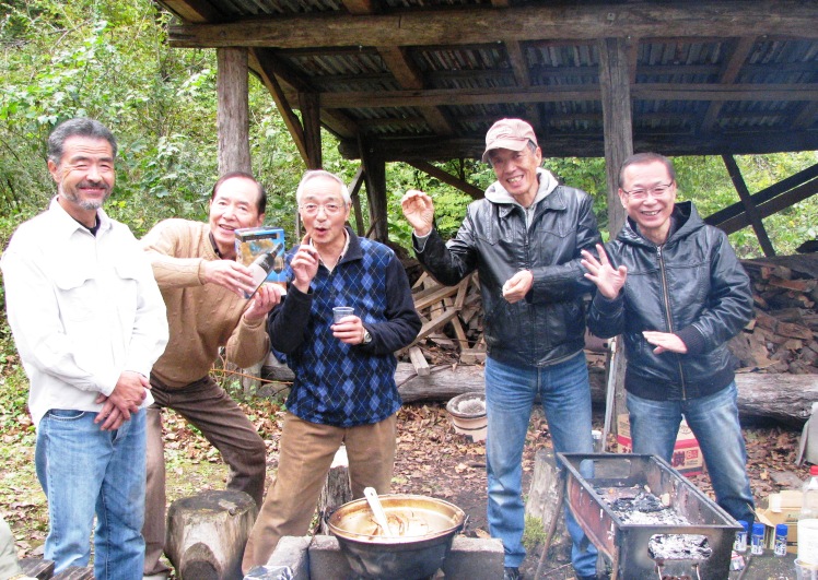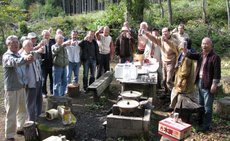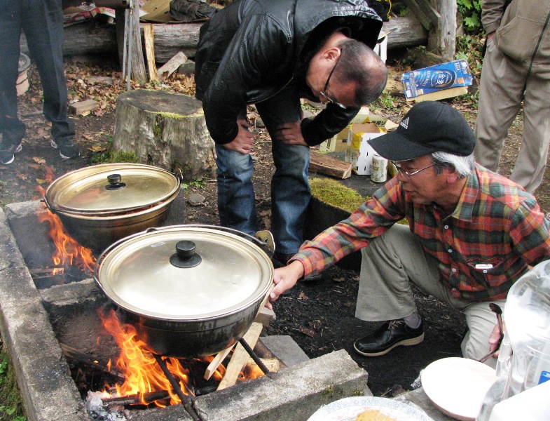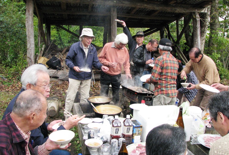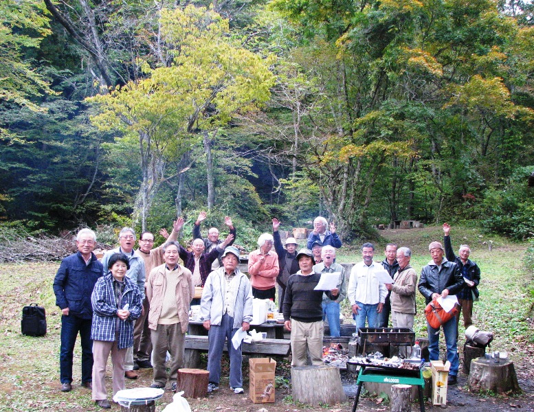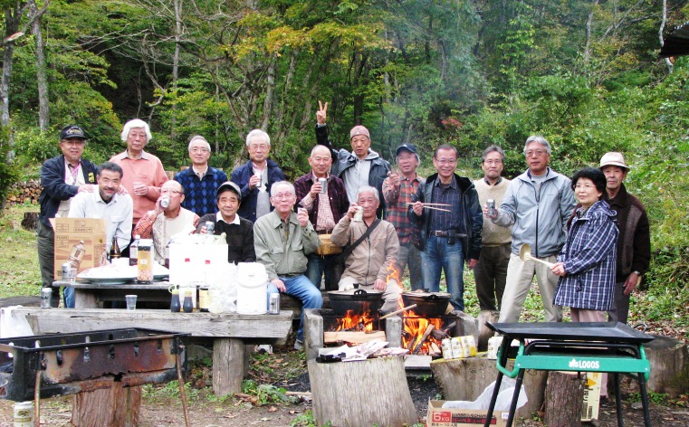 「芋煮会」は芋煮鍋が中心ですが、バーベキューとアルコールがつきものです。皆さんの食欲も旺盛、アルコールも無限に近い程の人もおり、和気藹藹と飲むほどに現役のころの懐かしい話、その後の身体の調子(つきもの)等楽しい話は尽きる事無く午前11時から帰りのバス発車まであっという間の4時間半でした。
