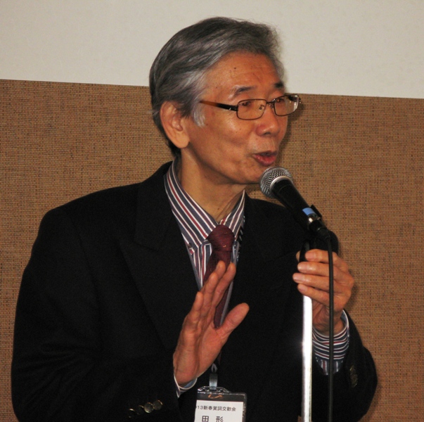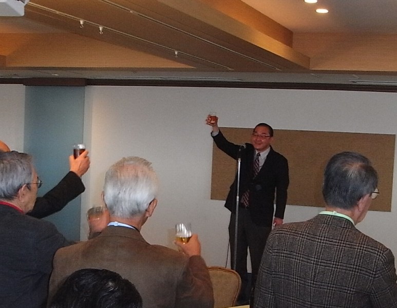 佐藤会長の新年の挨拶に続いて、HPの編集委員で還暦を迎えたばかりの須田昭孝さんの乾杯の発声がありいよいよ本格的に宴の始まりです。