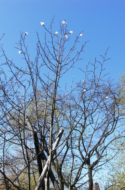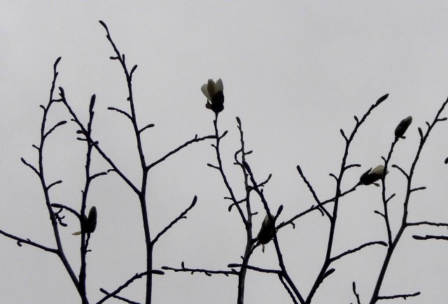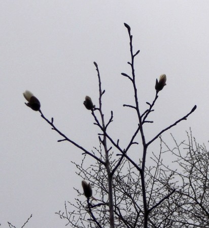 “石尾さん、キタコブシに花が!”