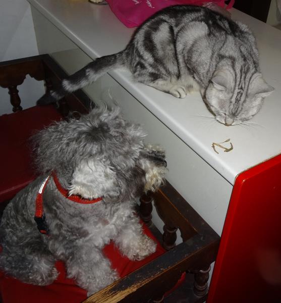 ワンちゃんは2/3代目が祖母/孫の関係だったのですが、14歳と9歳で相次いで死んでしまい、金輪際犬は飼わぬと言う積りだったところ、餌や散歩のことでの夫婦の会話がなくなってしまったので、6ヶ月後に加わり 現在3歳。
