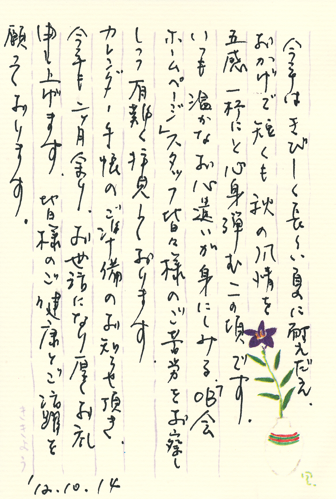 こんな活動を6年間続けてまいりましたが最近、いろいろな声があちこちから届くようになりました。 メールばかりではありません。はがきでも届いています。つい最近はとても励まされる便りも東北から届きました。はがきともどもご紹介したいと思います。