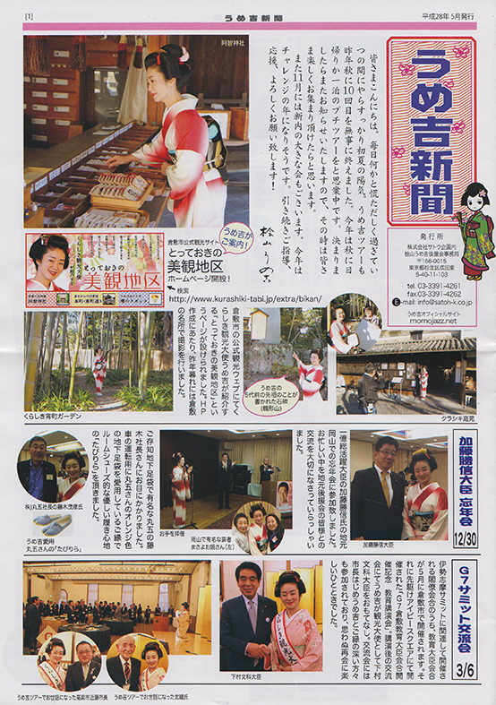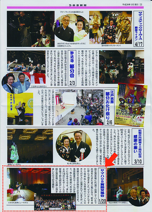 平成28年5月発行の「うめ𠮷新聞」の2ページ目(全4ページです)に、ヤマハOB会、1月20日の2016新春の集い、4月16日の第6回寄席鑑賞巡り同好会国立演芸場公演