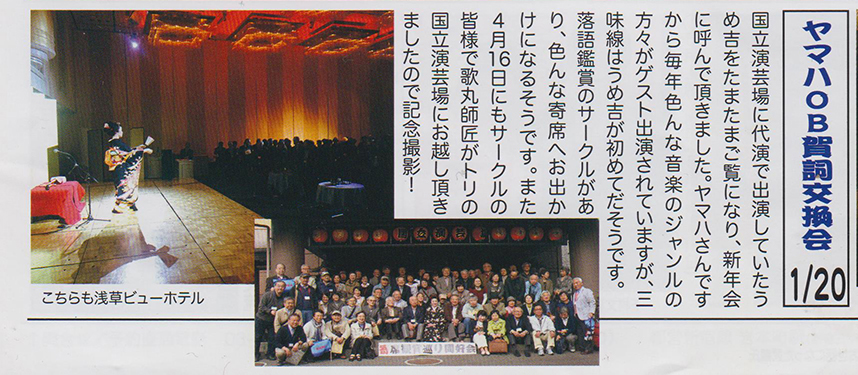 寄席鑑賞巡り同好会、渡邊家元より最近の「うめ吉新聞」が送られてきました。なんとその中に「ヤマハOB会の記事が掲載」されていましたのでご紹介します。