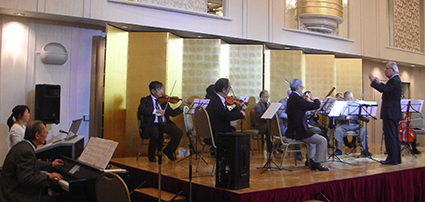 | シニアアンサンブルによるウエルカムコンサート 受付を済ませドリンクを片手に入場 |