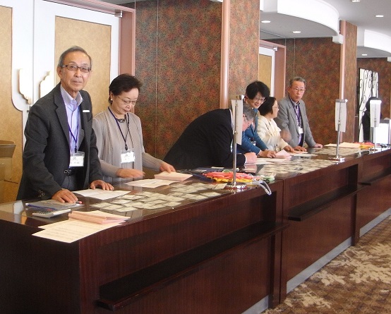 | 受付。会費を払い名札と参加者名簿を受け取ります |