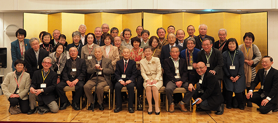 正午ちょうどに今年の司会、袰川昌代さんの開会のことばで「2016年新春の集い」が始まりました。まず会長の齋藤和男さんより多数の方にご参加いただいたお礼と、老人の健康年齢の話題に触れられOB会を活用して楽しい老後をまた楽しくOB会を運営していきたいとの和やかな開会挨拶になりました。