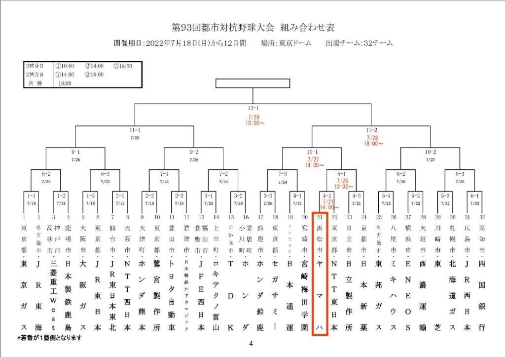 ヤマハ野球部は第 93 回都市対抗野球東海地区予選にて、昨年に続き第 1 代表を勝ち取り、浜松市