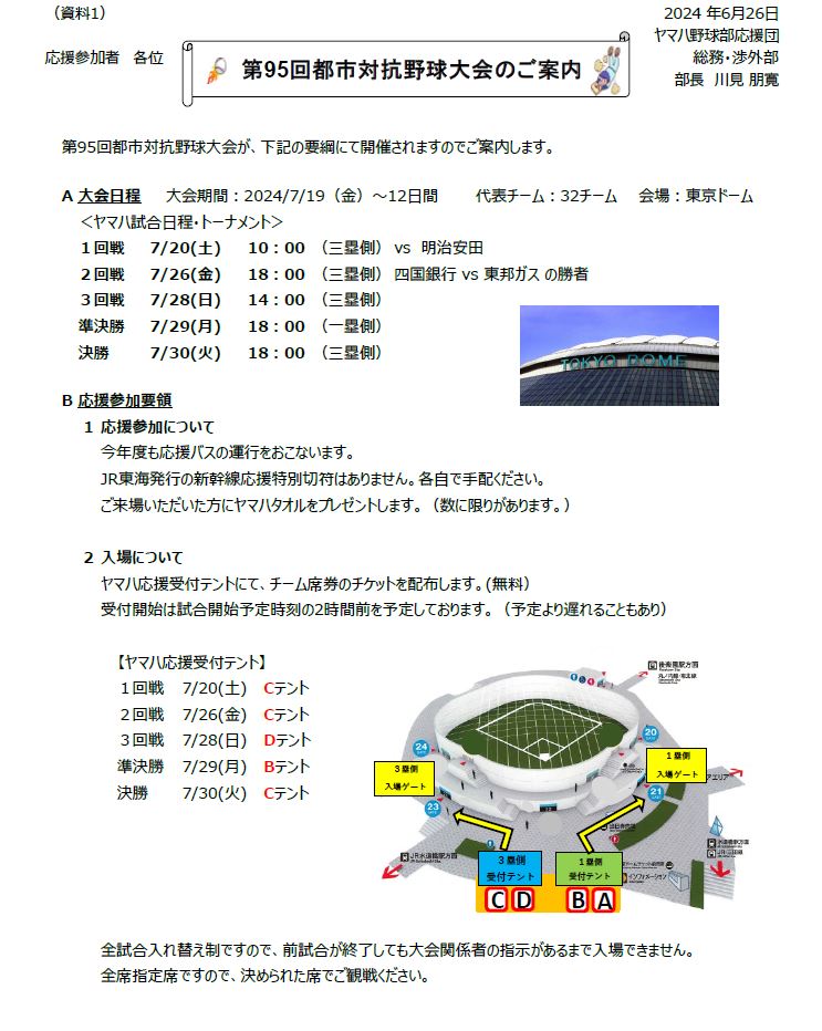 ヤマハ野球部  第95回都市対抗野球大会出場