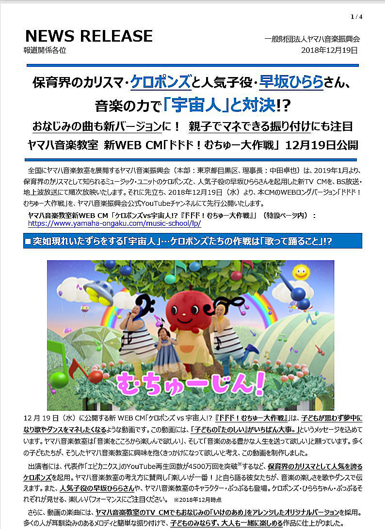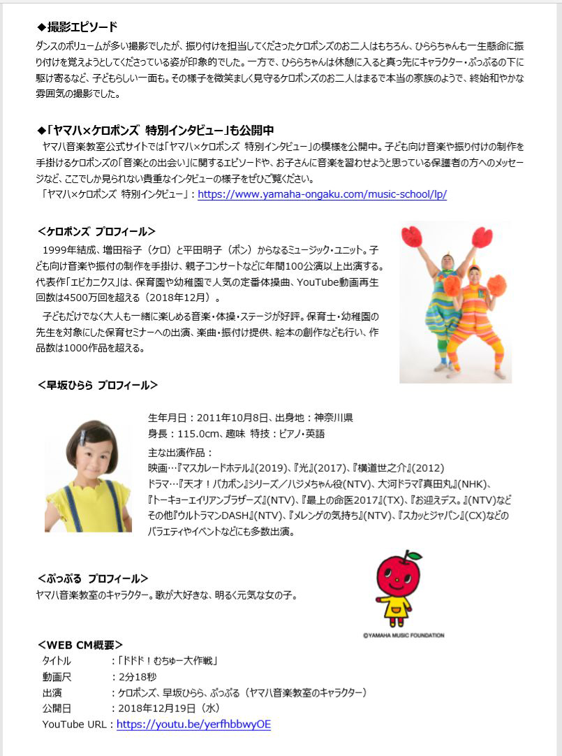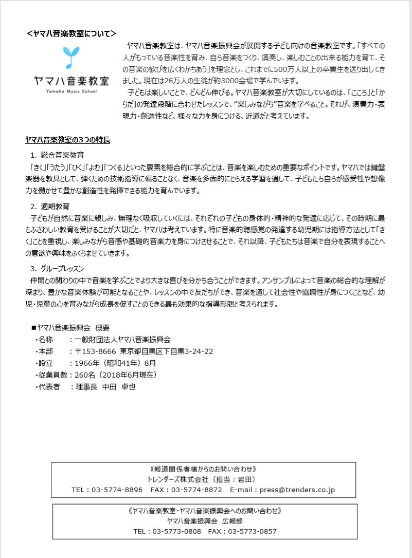 ヤマハ音楽振興会より、2019年ヤマハ音楽教室の生徒募集動画のご案内です。
