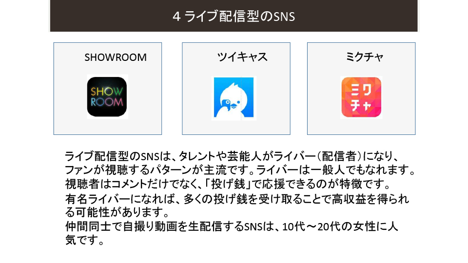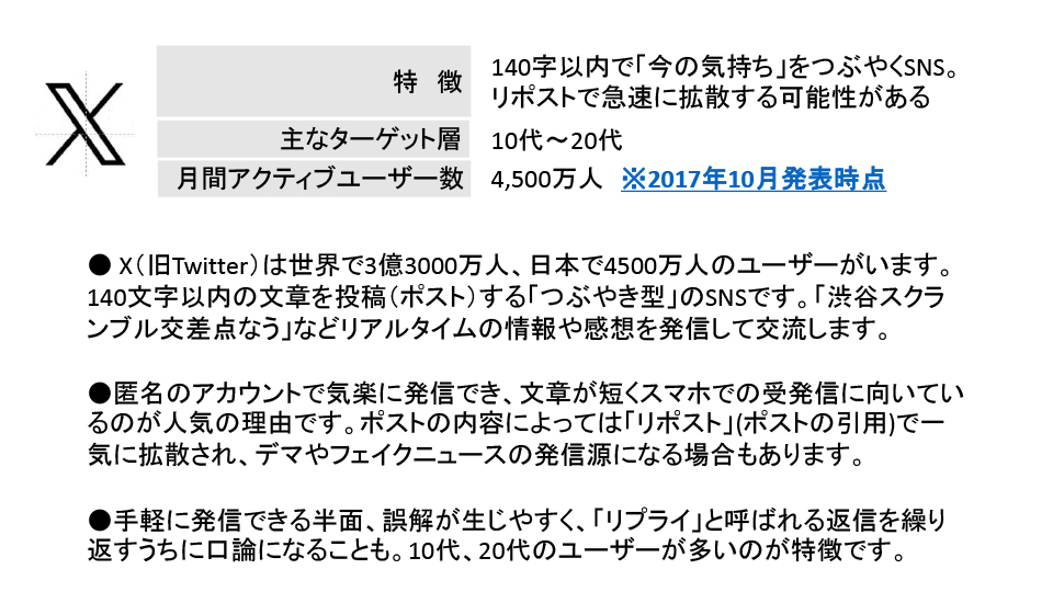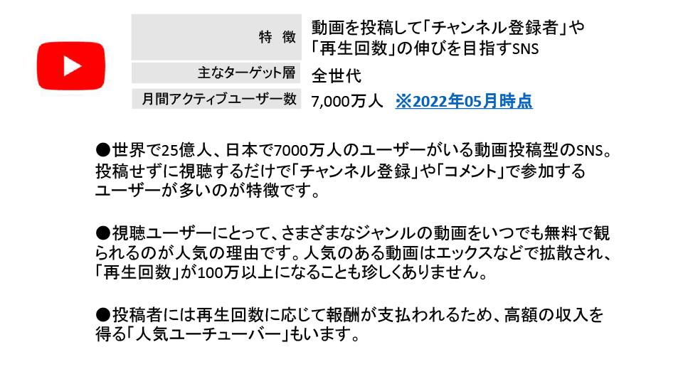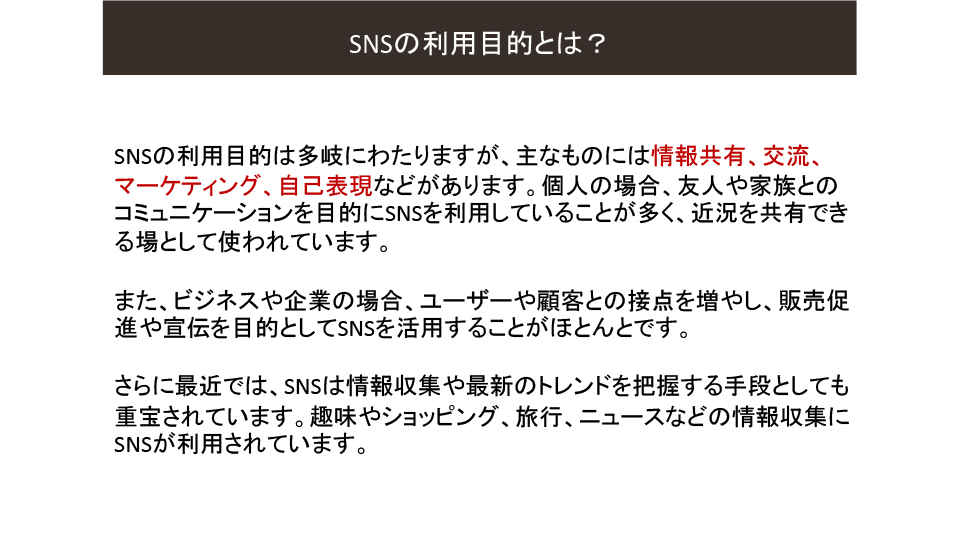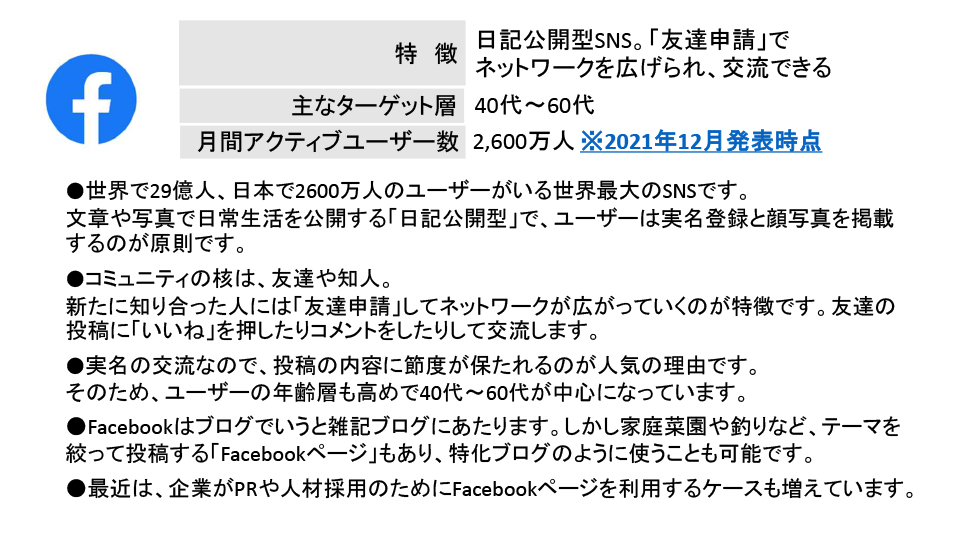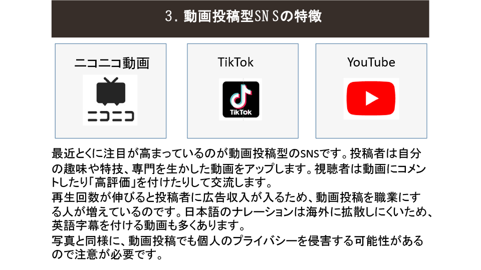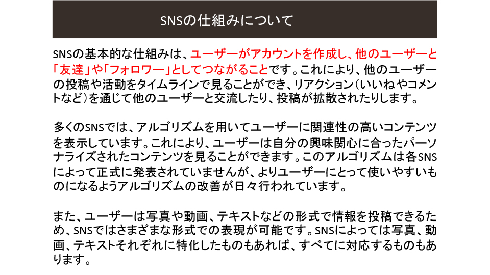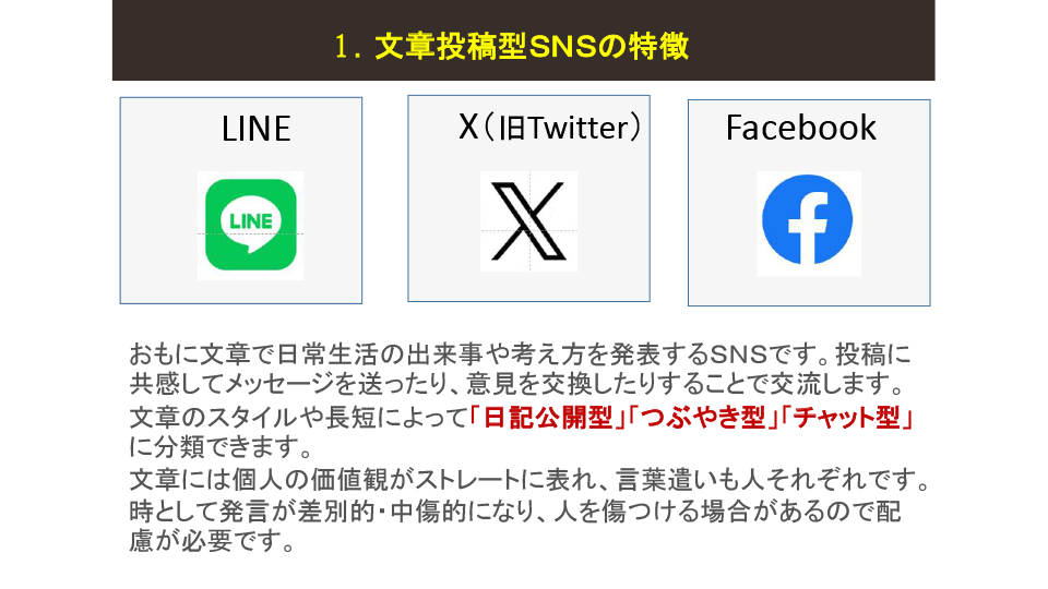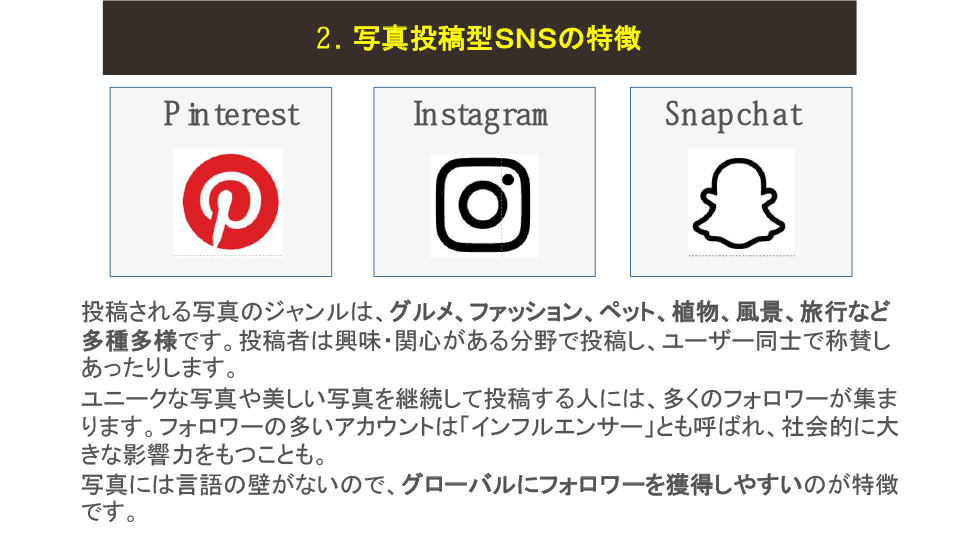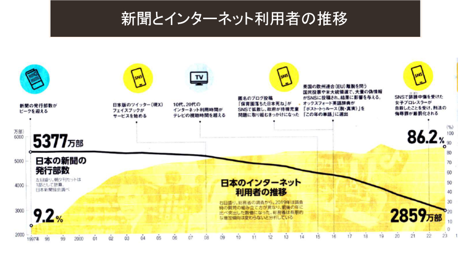 2025年度6月例会(第205回) 2025年6月例会 参加者 2025年度6月例会開催 ◆日 時:2025年6月20日(金) 13:30~ ◆会 場:新橋ばるーん ◆会 費:1,000円 ◆トピックス ①「SNS」を整理する・・・・・・・・・・田中 達也 ②PowerPointのPDFデータ化・・・・・・ 鴨井 次郎 ③質疑応答 ・・・・・・・・・・・・・・ 三国 龍夫 池尻 石井 稲葉 袰川 岩佐 小坂 小高 鴨井 菅 金城 後藤 小柳 田中 露崎 永井 長尾 原 福井 布施 松原 三国 敬称略 五十音順 トピックス「SNSを整理する」 田中達也 6月例会のトピックスは会員からの要望がありましたSNSがテーマです。 連日のようにマスコミで 取り上げられているSNSですが、この辺で立ち止まって整理することにしました。 インターネットとマスメディアの新聞とのかかわりをこの30年弱で振り返ることから始まり、SNSとメール・SMSとの役割の違い、仕組み、使用目的などをLINEの達人の原さん、facebookの達人小坂さんにコメントをいただきながら理解を深めていきました。 最後に文章投稿型、写真投稿型、動画投稿型、音声投稿型などタイプの違う SNSの解説をしてトピックスを終了。付録で現状SNS利用するときの注意点などをお話ししました。 例会で使用したすべてのスライドは、最後の欄の文章をクリックすると拡大版でご覧いただけます。 例会で使用したPowerPointの抜粋 例会で使用されたすべての スライドを拡大してみる PowerPointのPDFデータ化 鴨井次郎 PowerPointは プレゼンテーションの際皆さんに分かりやすく説明するために有効なソフトです。 PowerPointはスライドの数にもよりますがデータが非常に大きくなりデータのやり取りなどメールの添付資料としては扱いにくいファイルになってしまいます。 そこでデータを保存する際PDFデータにすると小さなデータになり非常に取り扱いが簡単になります。ただし元のデータにあったアニメーションや画面切り替えのデータなどは保存できないためPDFの画面は動きがなくなります。 PDFのファイルに変換する方法ですが保存する際ファイルの種類でPDFで保存するを選択することでPDFに変換されます。この際もう一つ大事な点は「○ 最小サイズ(オンライン発行)」にチェックを入れることを忘れるとデータを小さくすることができませんので注意が必要です。 質疑応答 三国龍夫 Q: スマホに写真などを入れておくとすぐ「容量がいっぱいになりました」との警告が出てきてしまいます。どうしたらいいでしょう? A: アンドロイドのスマホとiPhoneではその対処法がちがいます。 アンドロイドでは新しく外部のメモリーを用意してそこにデータを移すことで解決します。 iPhoneでは外部メモリーが用意されていないのでアップルで用意したiCloudに申し込み(有料)そこにデータを保管することができます。 最後の手段はスマホをメモリーの大きい機種に買い替えることで解決はできますが、その前に写真や動画などの大きなデータは、パソコンに移しておくことをお薦めします。 トップページに戻る