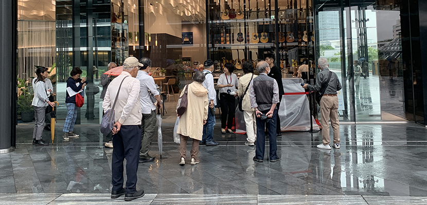 見学後、参加者から「新しいヤマハのイメージ満載ショップ楽しかった」「新たなヤマハ横浜店はスッゴイ!営業的にも繁盛することを祈りますなどの声がLINE上にあがり全体に好評の新しいショップとの印象でした。