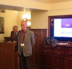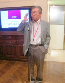 神免宏憲さんにお願いしましたが、執印智司さんをマイクに呼込んでいただき、お二人からのメッセージです。張りのある声と凜とした姿の執印さんからは、87歳にもなると会合がめっきり少なく寂しいものとのお話。