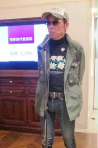 そして、宴もたけなわのころ初参加14名の紹介が始まりました。節目の15回にふさわしく、家具ショップや管理・経理部門を中心に華やかな顔振れです。トップバッターは男性陣を代表して、浜松から上京された岡野拓夫さん。夏は北海道礼文島で過ごし、あちこちに放浪の旅もされるそうです。