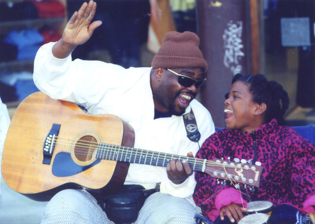 「リズムにのって」 外国を旅するとストリートミュージシャンをよく見かける。この光景はロサンゼルス郊外のサンタモニカで出会った黒人親子。 歌っている声が聞こえてくるシーンでたくさんの観客の中で暖かい空気の一瞬を撮ることができました。